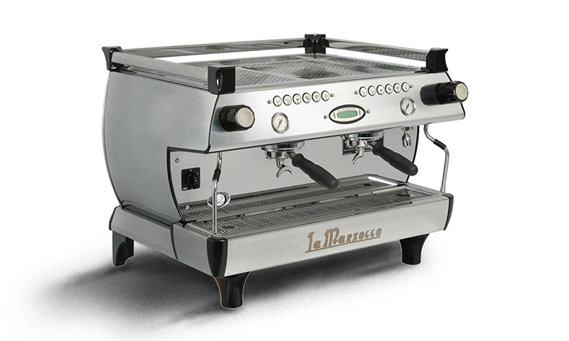 LA MARZOCCO GB5 它是擁有固態繼電器,PID溫度控製系統,進水預熱系統以及可調式蒸氣系統輕易調整蒸氣量,GB/5是以電子控管整台機器溫度控調穩定性很高帶領著一般咖啡機進入下一個層次,內建的雙鍋爐系統和壓縮器很適合給傳統的咖啡店和高品味的咖啡店使用,GB5 除了上述的獨立雙鍋爐優點外還有著,可調整溫度間隔為0.1度,加上PID溫控系統可提供更穩定的萃取水溫,GB5的電子設定還有著可設定咖啡預浸泡秒數的功能,能先讓咖啡粉末吸收熱水先行膨漲及濕潤,提高萃取咖啡粉的豐富口感,可設定機器的自動開關機時間,讓你在一開店即可接受客人點用咖啡不必在等候耗時的熱機時間,電子板還有著咖啡萃取讀秒器的功能,能計算萃取的秒數供您還原咖啡時做為參考依據,咖啡製作杯量記錄可統計你製作的咖啡產品數量方便咖啡豆的使用數量成本控管以及提醒更換濾水器濾心的功能。